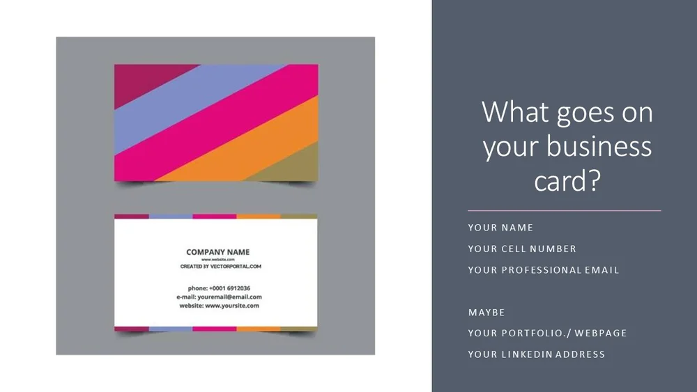 In conclusion when deciding what to put on a business card you need to pay attention to your needs. That means should always include the name of your business, logo, and tagline (if applicable) somewhere on your card. Make it snappy one final touch to include on your business card is a catchy slogan or quote to grab a prospect's attention. In the simplest terms, a business card is a small piece of paper or card that displays your business contact information on it. A business card typically includes the giver's name, company or business affiliation (usually with a logo). So it's important to know what to include in your business card in order to establish powerful connections with potential leads and customers. What info should you include on your business card? It's often the only reminder a contact has of your conversation. They are shared during formal introductions as a convenience and a memory aid. A business card design with a vertical layout is a quick way to make a unique card. Our free templates include images, fonts and color schemes, so everything is ready to go. To prevent prospects from throwing yours in the trash, we've put. A business card should look decent and professional as it conveys all basic information about an business person and his or her company.